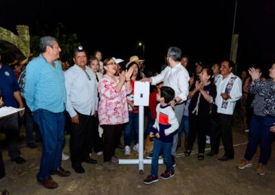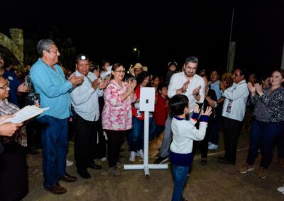 Tuxpan, Veracruz a 11 de febrero de 2026.- El alcalde Daniel Cortina Martínez encabezó el encendido de 75 luminarias en la comunidad de El Sacrificio, una acción que beneficia directamente a 186 predios, 68 viviendas y 558 personas que durante años vivieron en total oscuridad.