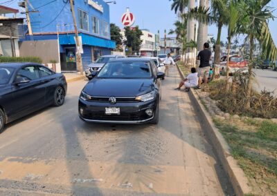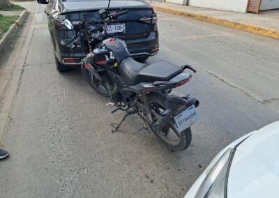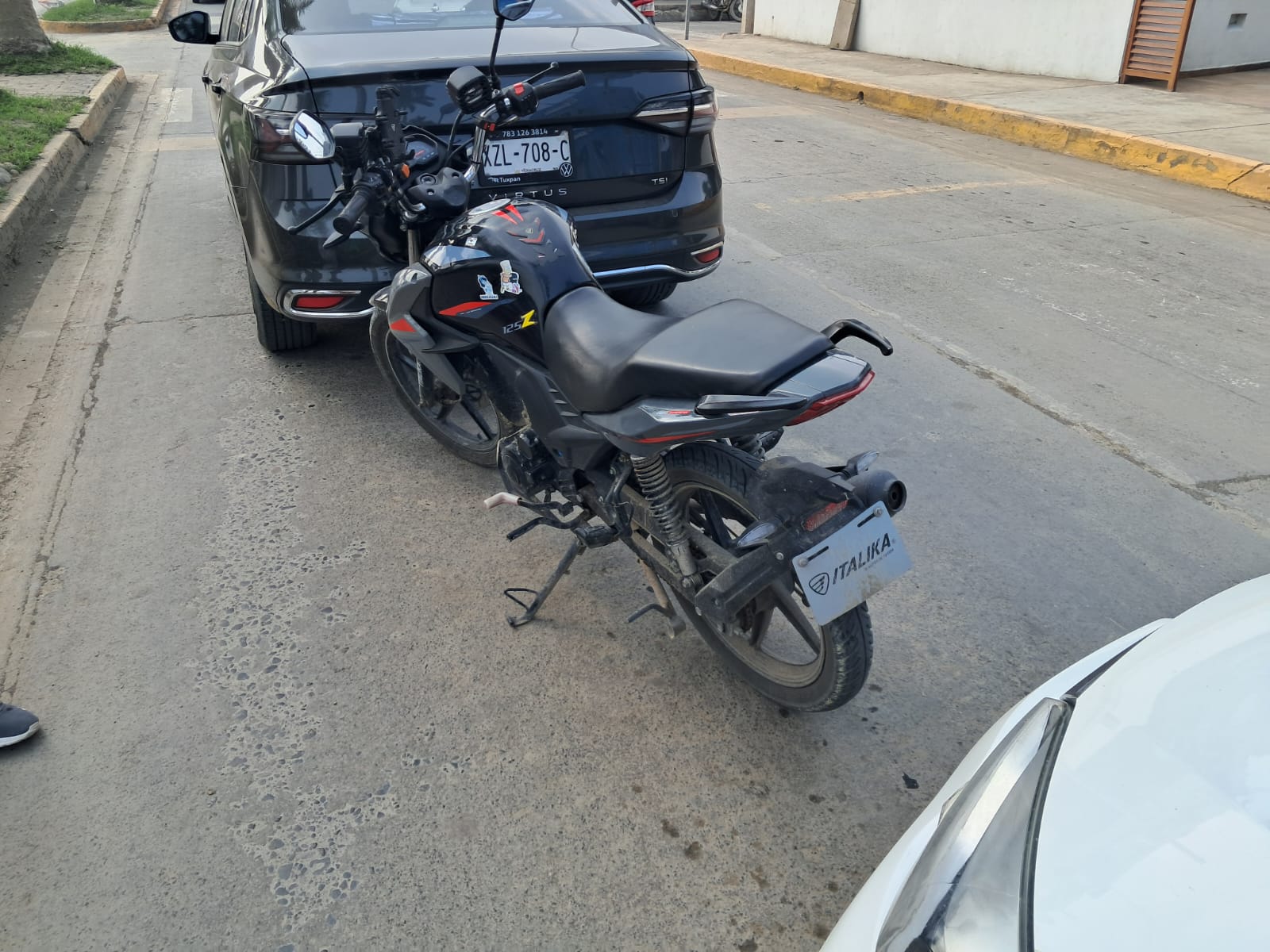 Debido al impacto, la motocicleta fue proyectada hacia adelante y chocó contra la parte posterior de un Volkswagen Virtus, color gris, modelo 2025, con placas XZL-708-C, manejado por Valentín Alberto M, vecino de la colonia Federico García Blanco.