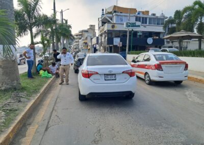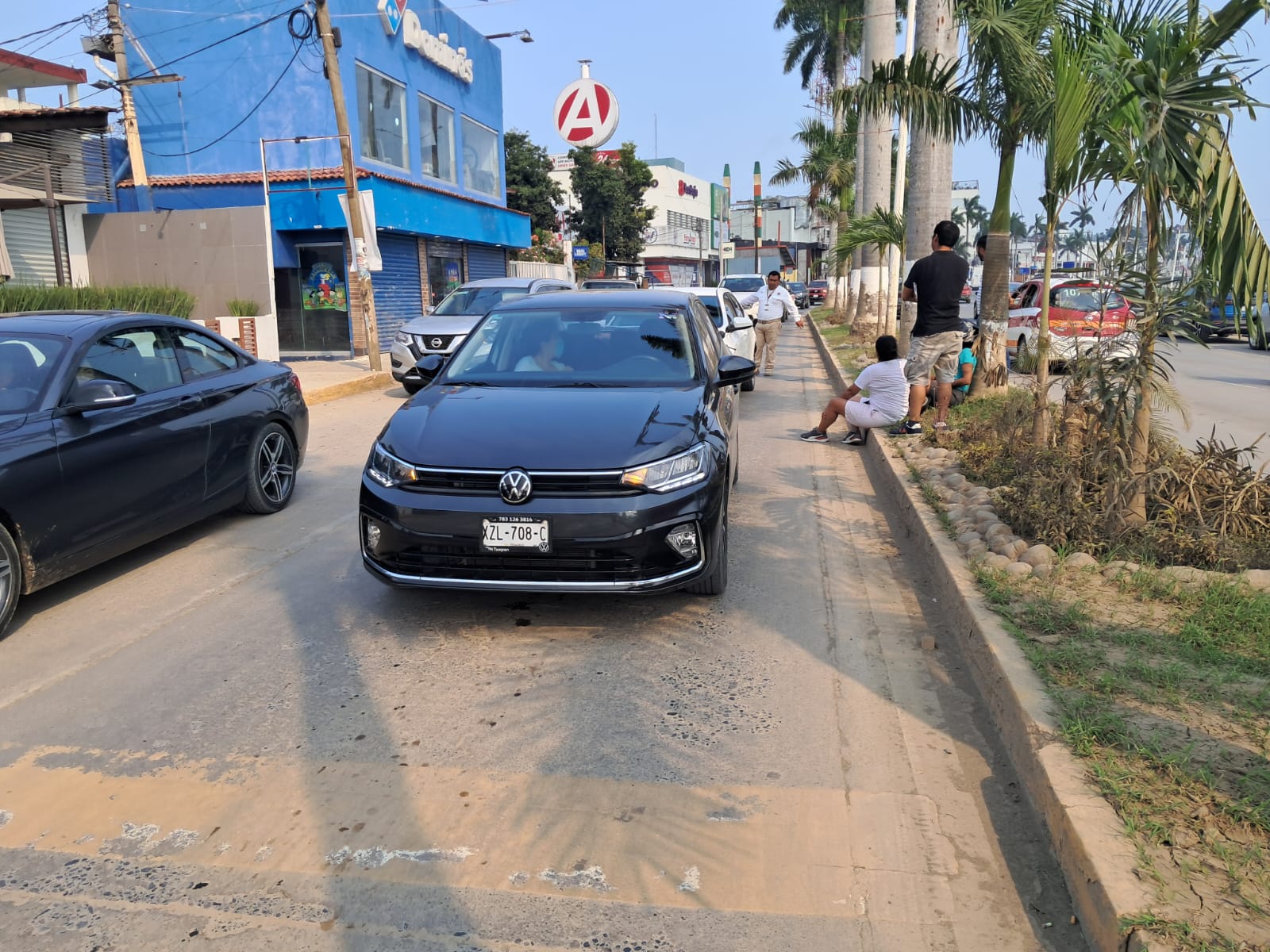 Presuntamente, al no conservar la distancia de seguridad adecuada, el automovilista impactó por alcance a una motocicleta Itálika 125 Z, color negro, modelo 2025, con matrícula X5V-60-V, que era conducida por Lorena V, de 30 años, con domicilio en la congregación La Victoria, en Tuxpan.