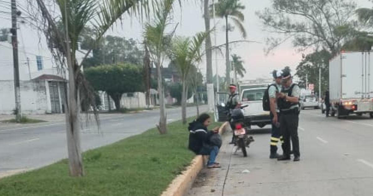 Grave accidente de motocicleta en Manuel Maples Arce deja a una mujer con probable trauma de cráneo