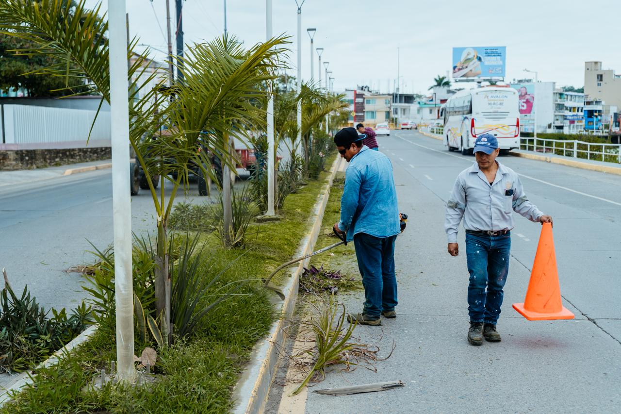 Con el embellecimiento del bulevar y la zona centro de la ciudad, limpieza con barredora hidráulica, reubicación de cableado del alumbrado público, desazolve de alcantarillas y mantenimiento en parques y jardines, comenzó desde muy temprano el trabajo de la dirección de Servicios Municipales a cargo de Mauro Molina.