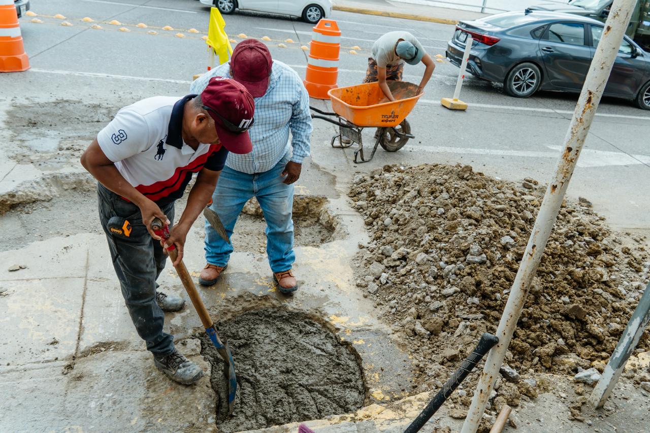 • La administración encabezada por el presidente municipal Daniel Cortina Martínez pone en marcha trabajos de limpieza, mantenimiento, bacheo y mejora de espacios públicos en el bulevar y la zona centro de la ciudad.