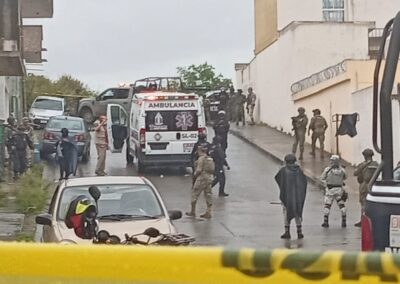 Elementos de la Policía Municipal y Estatal, así como de la Secretaría de Marina y del Ejército Mexicano, arribaron al lugar y establecieron un perímetro de seguridad para garantizar la atención de los heridos y prevenir nuevos incidentes. Técnicos en urgencias médicas de Protección Civil brindaron los primeros auxilios y trasladaron a los dos lesionados a un hospital, donde su estado de salud fue reportado como delicado.