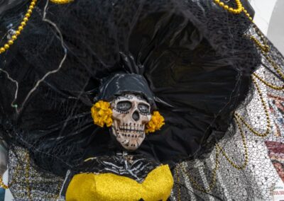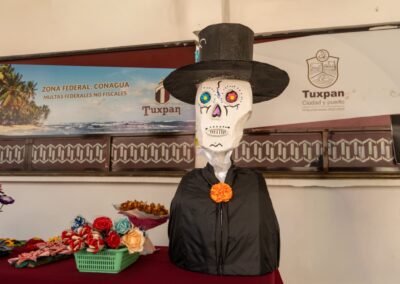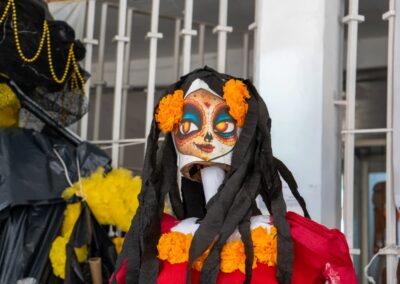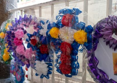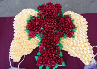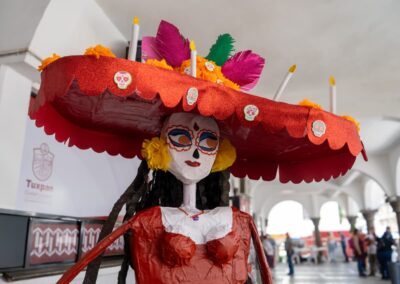 Destacaron los arreglos florales, coronas, cruces y varios más, alusivos a la celebración de Día de Muertos; también se expusieron catrinas elaboradas con cartón.