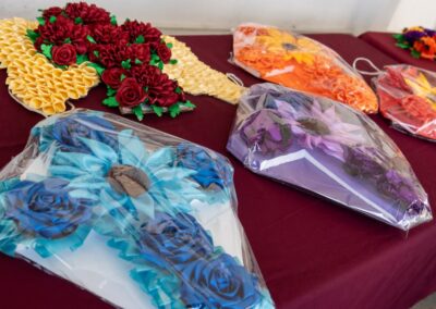 En la planta baja de presidencia municipal se exhibieron y pusieron en venta artículos creados con listón que se han realizado durante estas jornadas, bajo la impartición de la Fundación Sin Miedo a Trabajar Contigo.