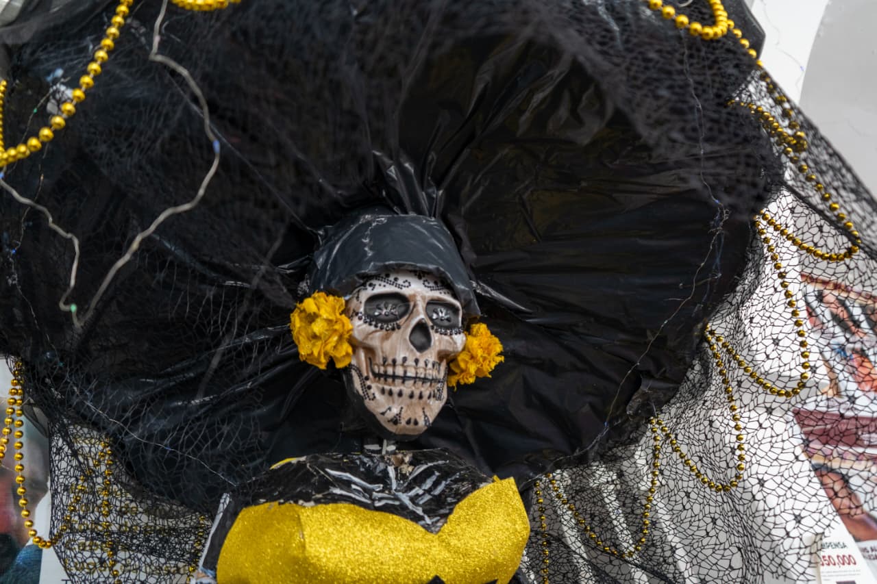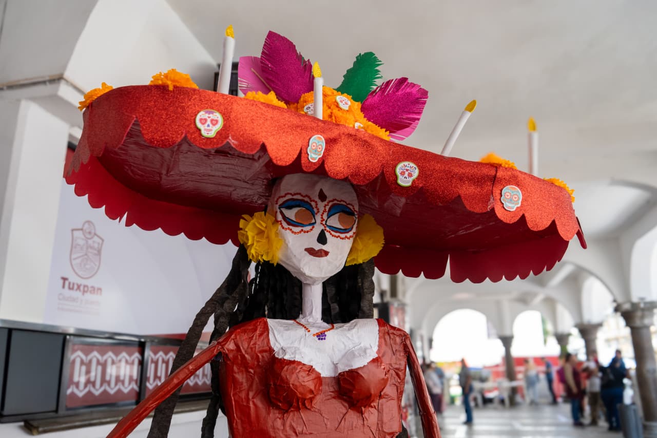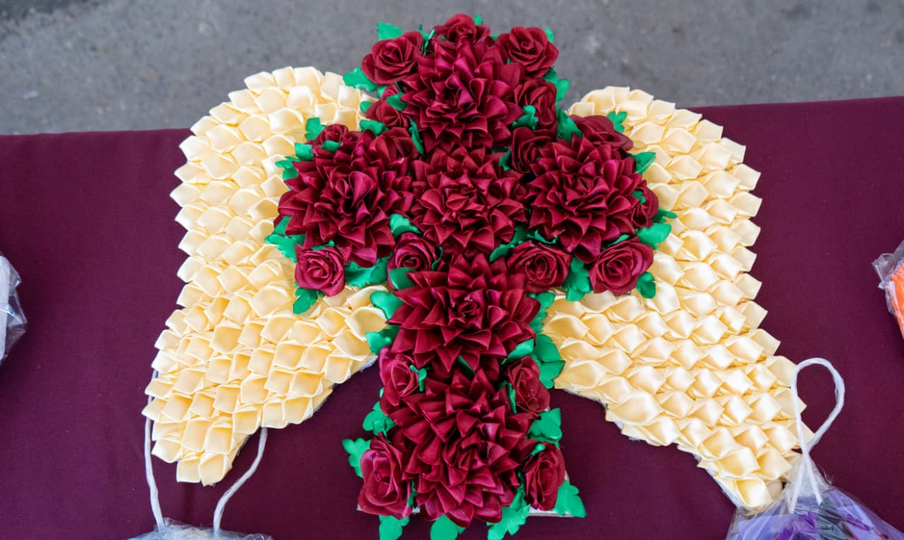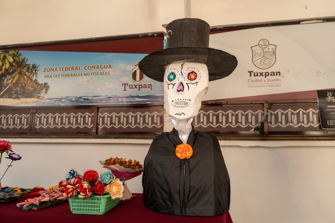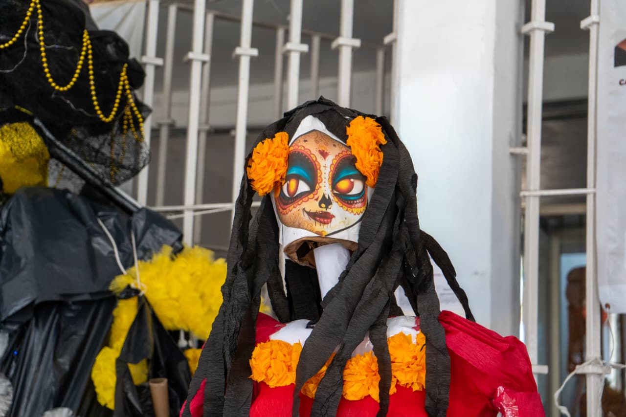 Destacaron los arreglos florales, coronas, cruces y varios más, alusivos a la celebración de Día de Muertos; también se expusieron catrinas elaboradas con cartón.