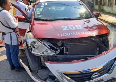 Joven conductor provoca choque con taxi y deja una mujer lesionada en la colonia Miguel Alemán