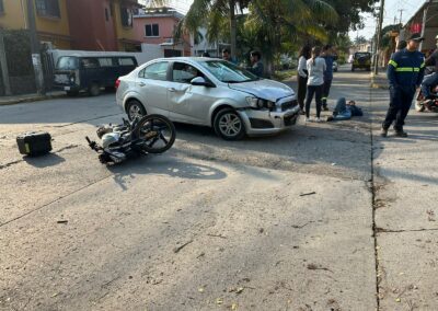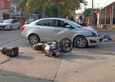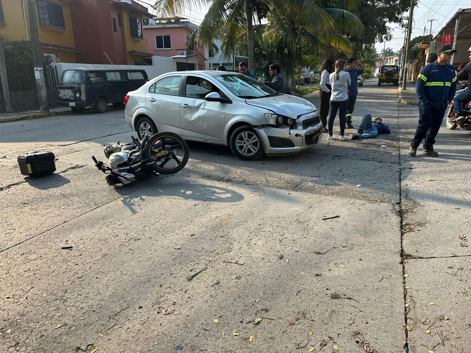 La motocicleta era conducida por Miguel Enrique «C», de 20 años, con domicilio conocido en la comunidad de Higueral, Tuxpan, quien tras la colisión cayó al pavimento y presentó lesiones leves, por lo que fue auxiliado por paramédicos y trasladado a un hospital privado para su valoración médica.