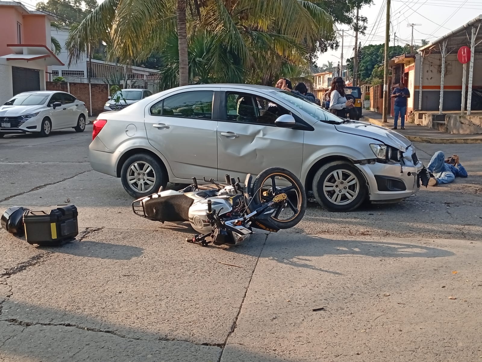 Un joven motociclista resultó lesionado la mañana de este miércoles tras ser impactado por un automóvil que realizó una maniobra de vuelta sin ceder el paso en un cruce de la colonia Infonavit Tenechaco.