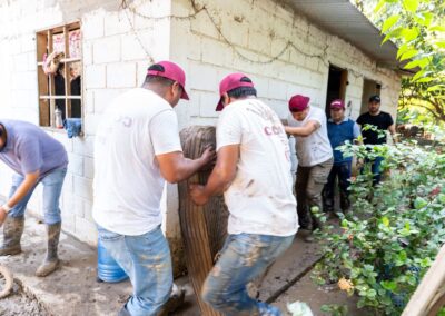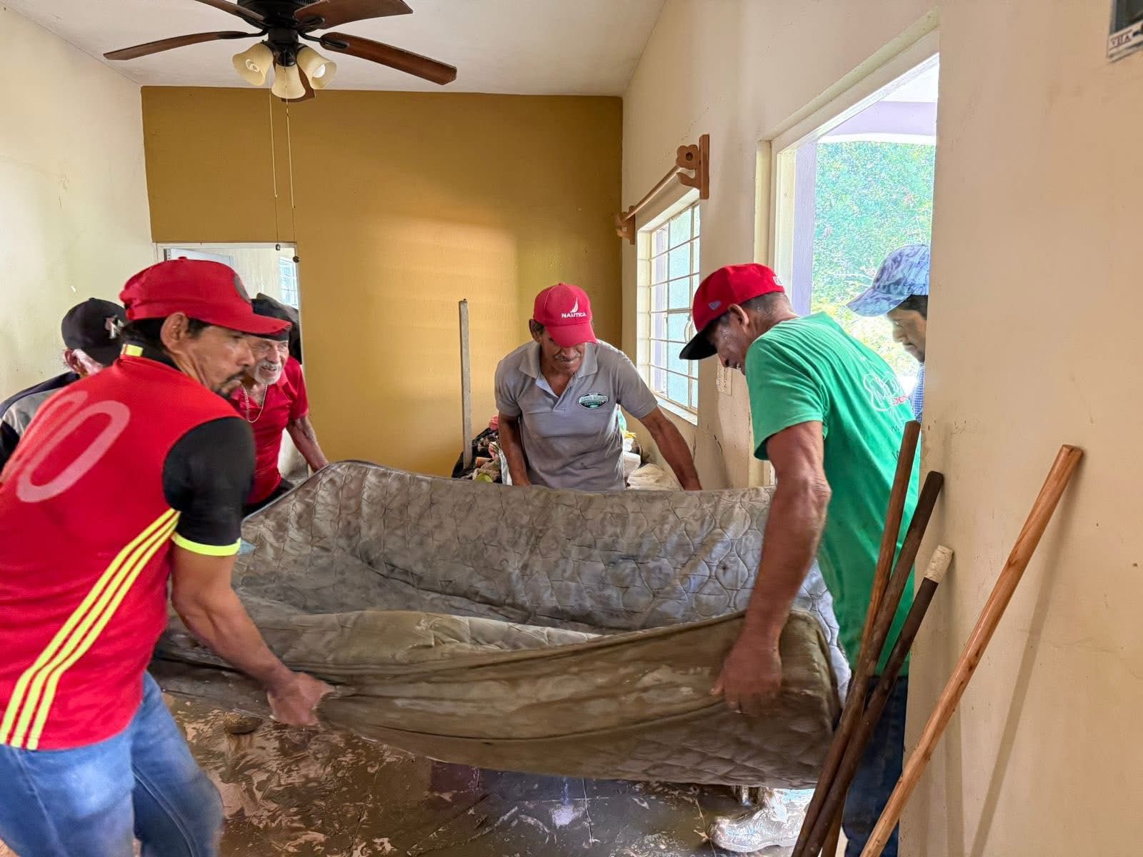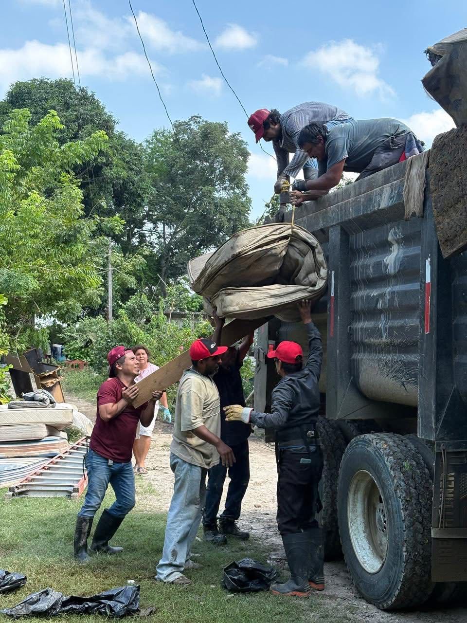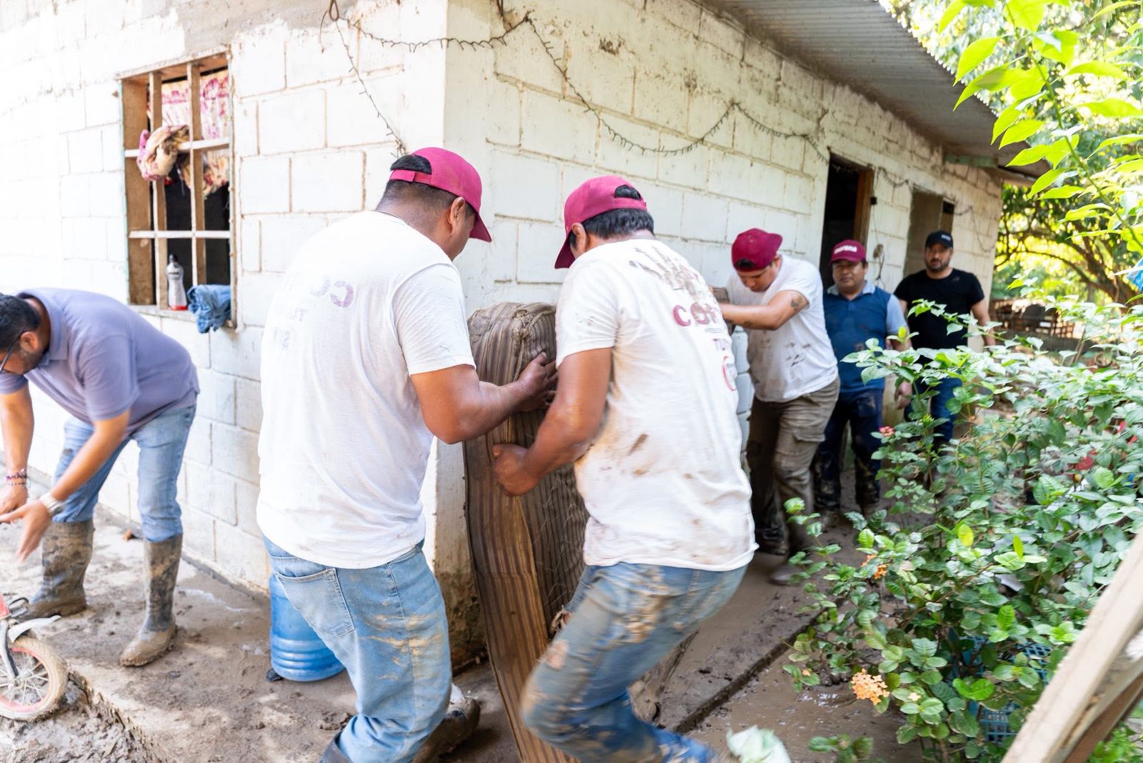 Con el esfuerzo y la voluntad de las cuadrillas, se avanza en la recuperación de Zapotal Zaragoza, Chomotla, Tampiquillo, Ojite, Frijolillo, así como en el Ejido, Congregación Juana Moza, y las colonias Los Artistas, Villa Mar, Framboyanes y Federico García Blanco, mediante intensas labores de limpieza y la entrega de víveres a las familias que más lo necesitan.