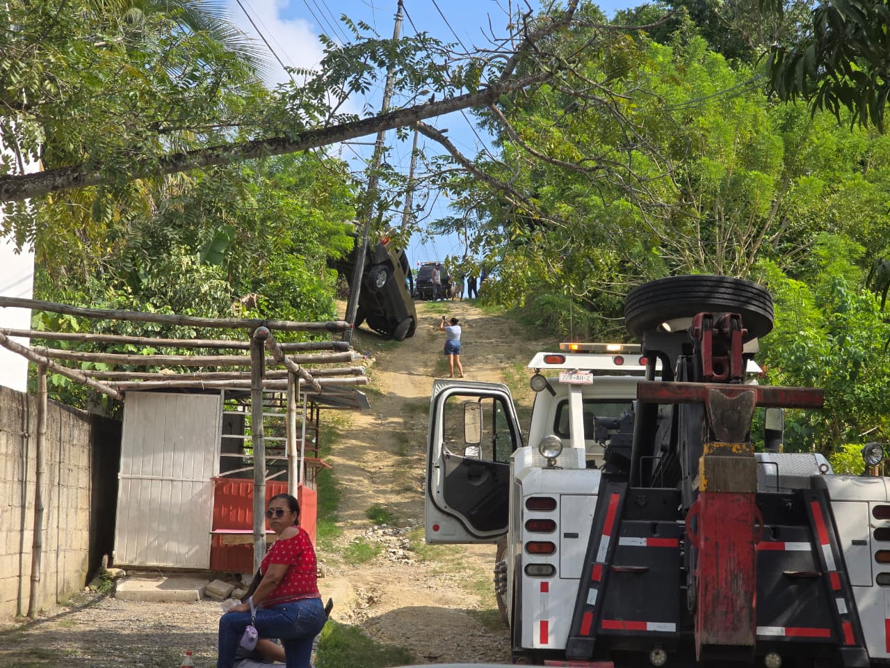 La unidad involucrada fue una Grand Cherokee color gris, modelo 2000, con placas XZN-4048 del estado de Veracruz, la cual perdió el control al intentar subir la pendiente. El vehículo decidió que subir ya no era opción, se desplazó en reversa y terminó adoptando una posición artística, quedando sostenido en ángulo sobre el cable tierra (retenida) de un poste de concreto propiedad de la CFE.