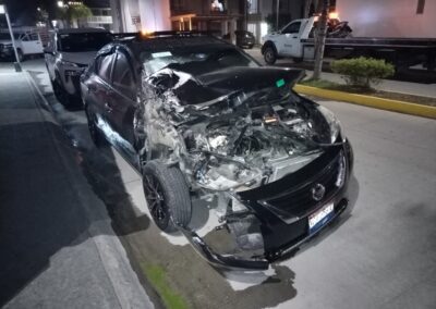 De acuerdo con lo observado en la escena, el Nissan Versa era conducido por Enrique “V”, y terminó incrustándose contra una camioneta Nissan Estaquitas propiedad de Arturo “L”, la cual se encontraba estacionada.