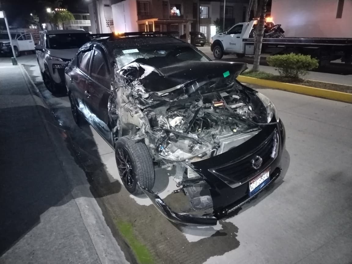 La noche del pasado martes 25 de noviembre de 2025, se registró un aparatoso accidente en la esquina de la avenida San Lucas y Privada Boca del Toro, dentro del fraccionamiento Cabo Alto, donde un Nissan Versa terminó prácticamente desfigurado luego de chocar a una camioneta estacionada y proyectarla hacia el portón de acceso.