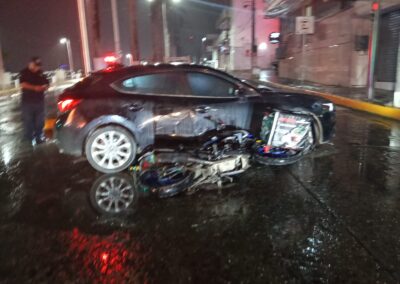 Dicha acción provocó que fuera impactado el vehículo marca Italika, tipo 150 Z, color negro, modelo 2025, placas X8V18U, conducido por Luis Edgardo «S», de 30 años, con domicilio en la colonia Niños Héroes.