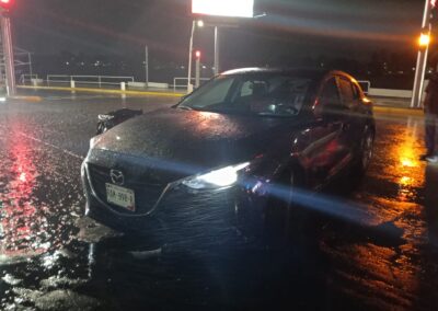 Agentes de Tránsito y Policía Municipal acudieron al sitio para asegurar la zona, agilizar el flujo vehicular y realizar las diligencias correspondientes para el deslinde de responsabilidades.