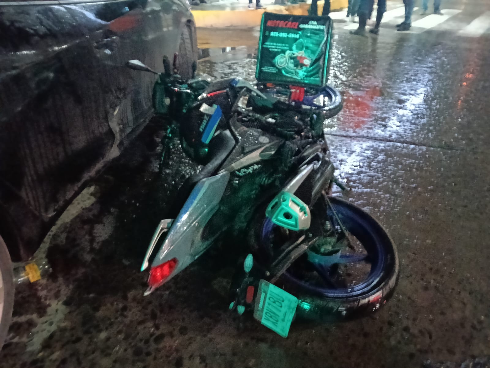 A consecuencia del golpe, el motociclista resultó lesionado, siendo atendido por paramédicos de Protección Civil y trasladado a un hospital para valoración correspondiente.