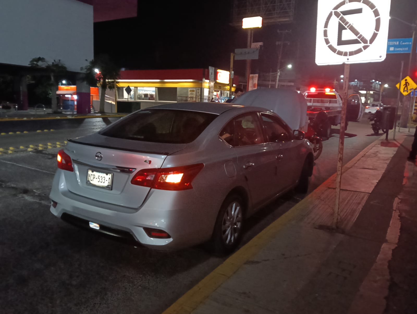 La noche de hoy viernes, alrededor de las 22:00 horas, se registró un accidente vial sin personas lesionadas sobre la avenida Demetrio Ruiz Malerva, a la altura de Liverpool, donde se vieron involucrados un automóvil particular y una motocicleta.