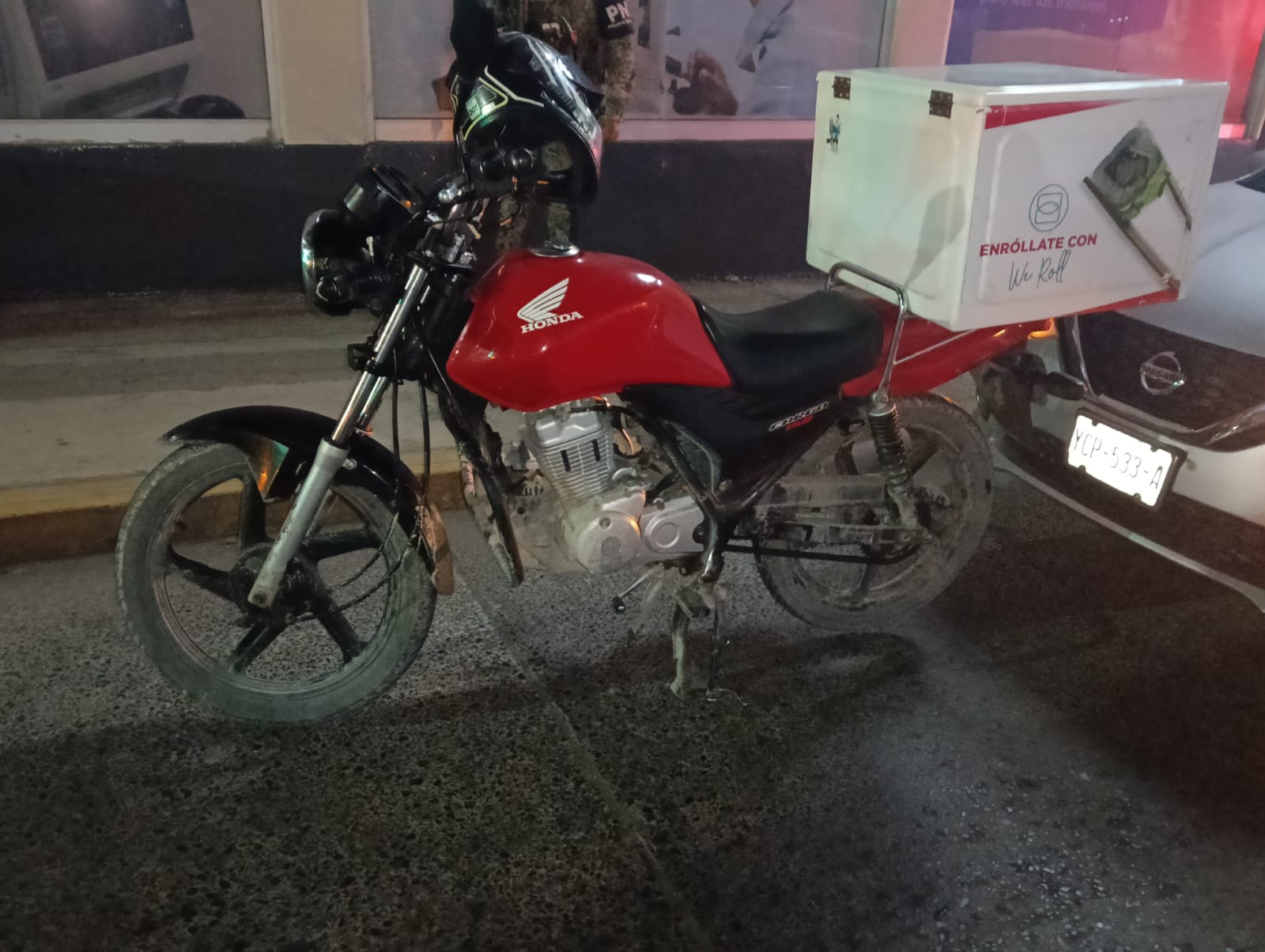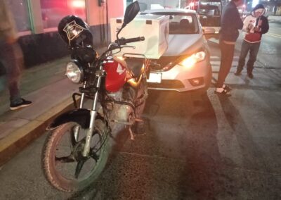 Las fotografías del percance muestran un choque por alcance, en el que un automóvil Nissan Sentra, con placas YCP-533-A, conducido por Miguel Ángel “R”, impactó por la parte trasera a una motocicleta Honda Cargo, que era piloteada por Julio César “V”, repartidor de comida japonesa.