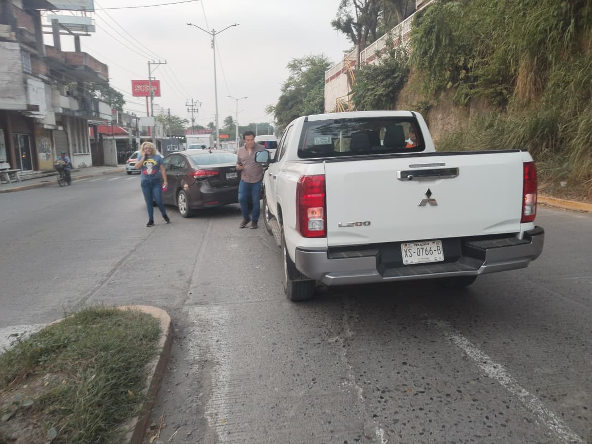 De acuerdo con el informe y lo que se aprecia en las imágenes del lugar, la camioneta Mitsubishi L200, conducida por Elio Guillermo “J”, impactó por alcance al KIA Forte conducido por la dama Jackeline “M”. Todo indica que la conductora del Forte se disponía a dar vuelta sobre la calle Bravo, en un movimiento vial totalmente normal y previsible, pero Elio —por exceso de velocidad y no mantener la distancia adecuada— simplemente no pudo frenar a tiempo. O dicho de forma clara: no sabe manejar.