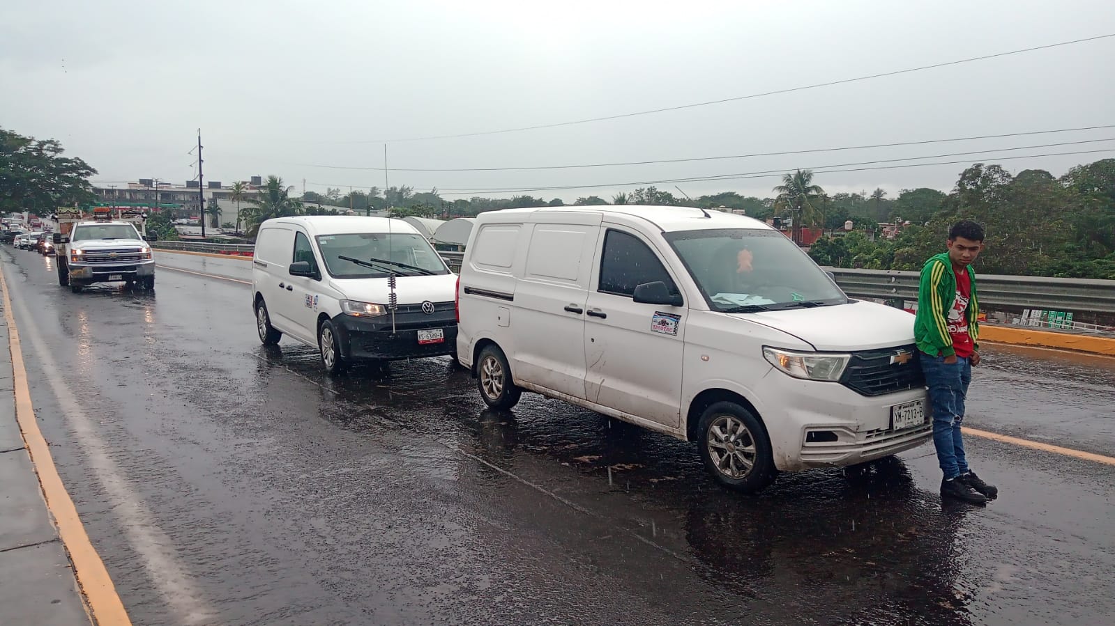 Un choque por alcance entre dos camionetas se registró sobre el puente Tuxpan, en el carril que conduce hacia la zona Centro de la ciudad, dejando como saldo únicamente daños materiales y afectaciones momentáneas a la circulación vehicular.
