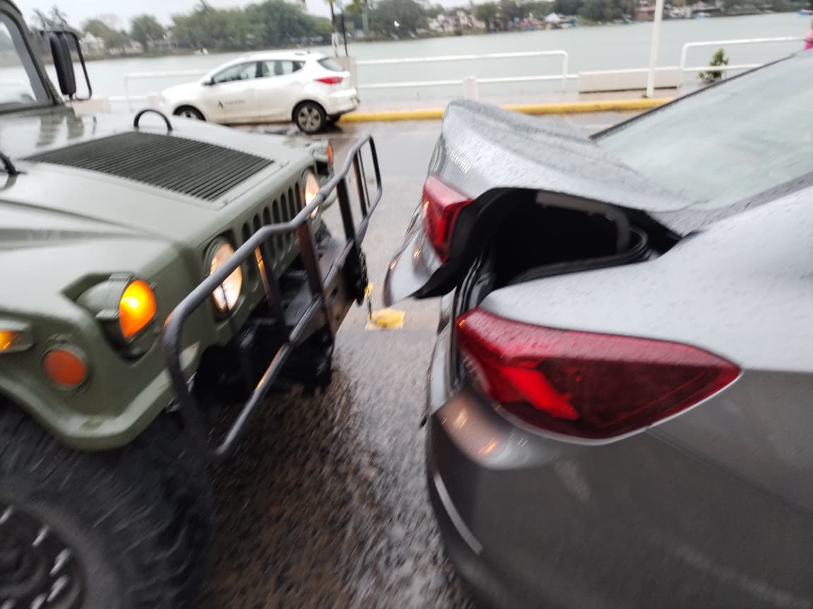 De acuerdo con la información recabada, el conductor del vehículo militar, identificado como Brandon “B”, fue señalado como responsable del impacto, al tratarse de un choque por alcance, mientras que el automóvil particular era conducido por José Alberto “C”.