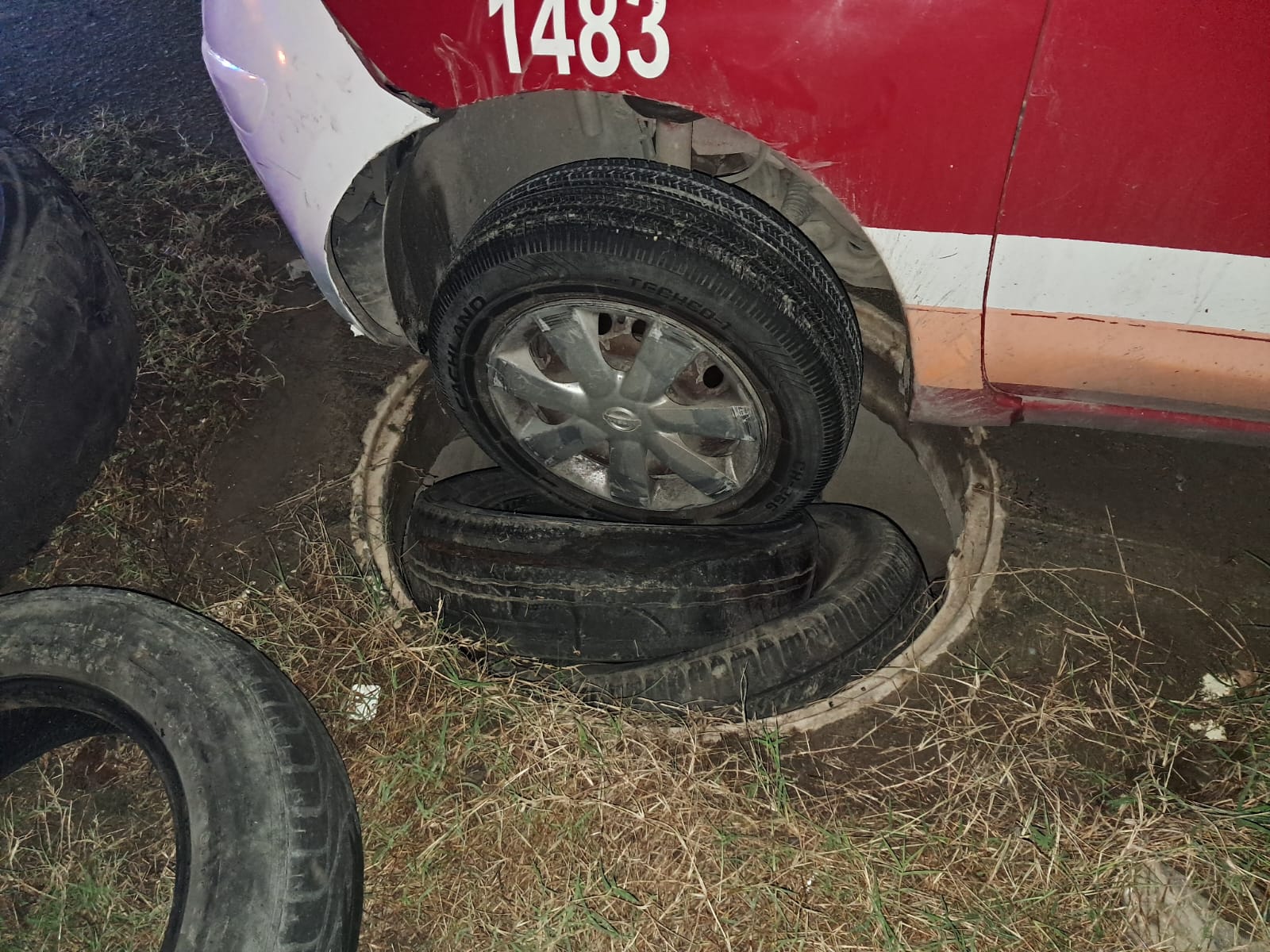 La unidad se encontraba sin ocupantes y sin datos visibles del propietario o del conductor, por lo que se presume que el chofer pudo haberse quedado dormido y posteriormente dejó abandonado el vehículo.