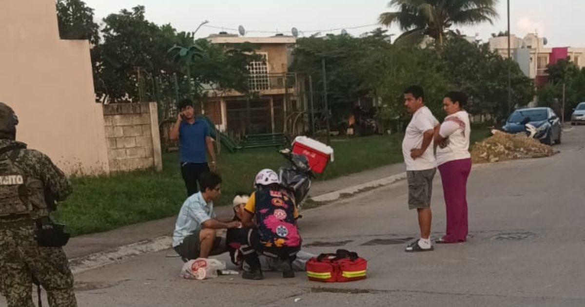 Un menor de edad identificado como Romel “N”, resultó con lesiones menores tras derrapar en una motocicleta sobre la Avenida Tunich, en la colonia Cabo Rojo, justo frente a la tienda OXXO.