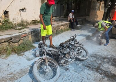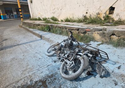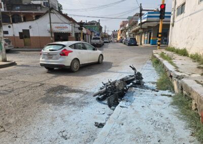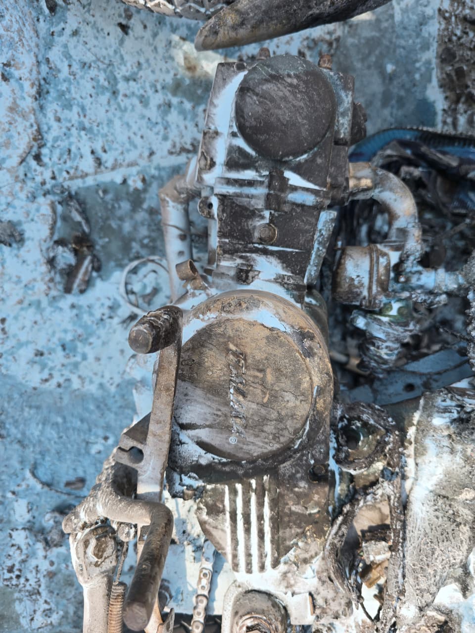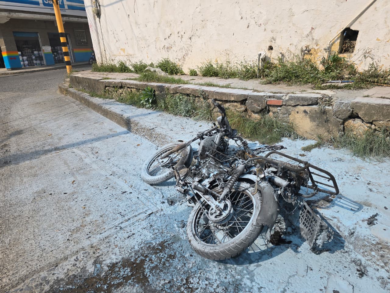 La motocicleta, una Italika, resultó con daños severos. Debido a la magnitud del incendio, es probable que sea considerada pérdida total y trasladada a un lote de fierro viejo.