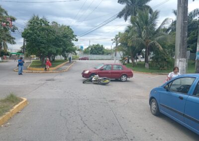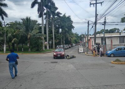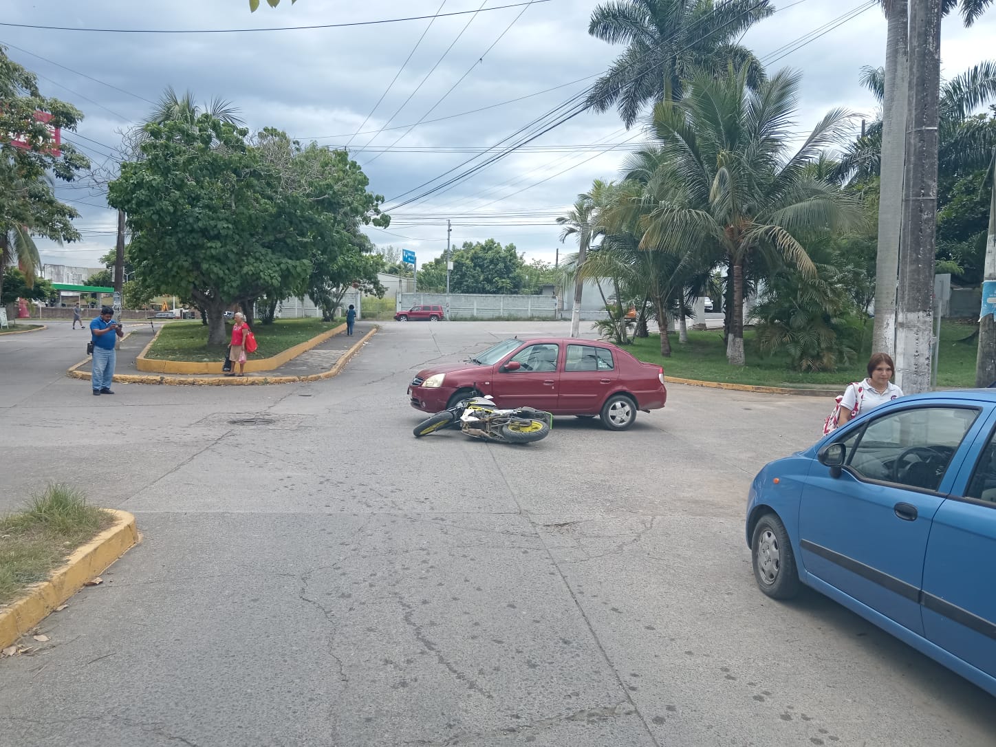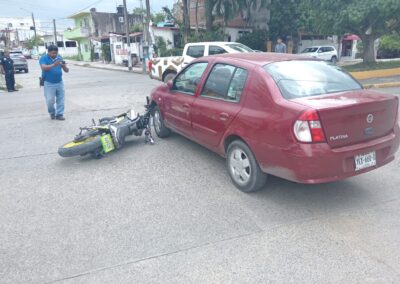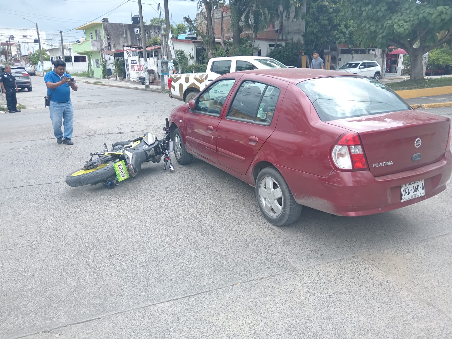 El percance ocurrió en el cruce de las calles Margarita Martínez y Fidel Velázquez, de dicha unidad habitacional. En el lugar colisionaron un automóvil Nissan Platina, color rojo, con placas del estado de Veracruz, manejado por Martha “N”, y una motocicleta Italika tipo 250, color verde con negro, sin placas, piloteada por Juan Daniel “N”.