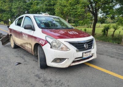 La unidad involucrada es el taxi número económico 419, con placas A-404-XET, perteneciente al municipio de Álamo Temapache, el cual terminó con daños considerables en la parte posterior.