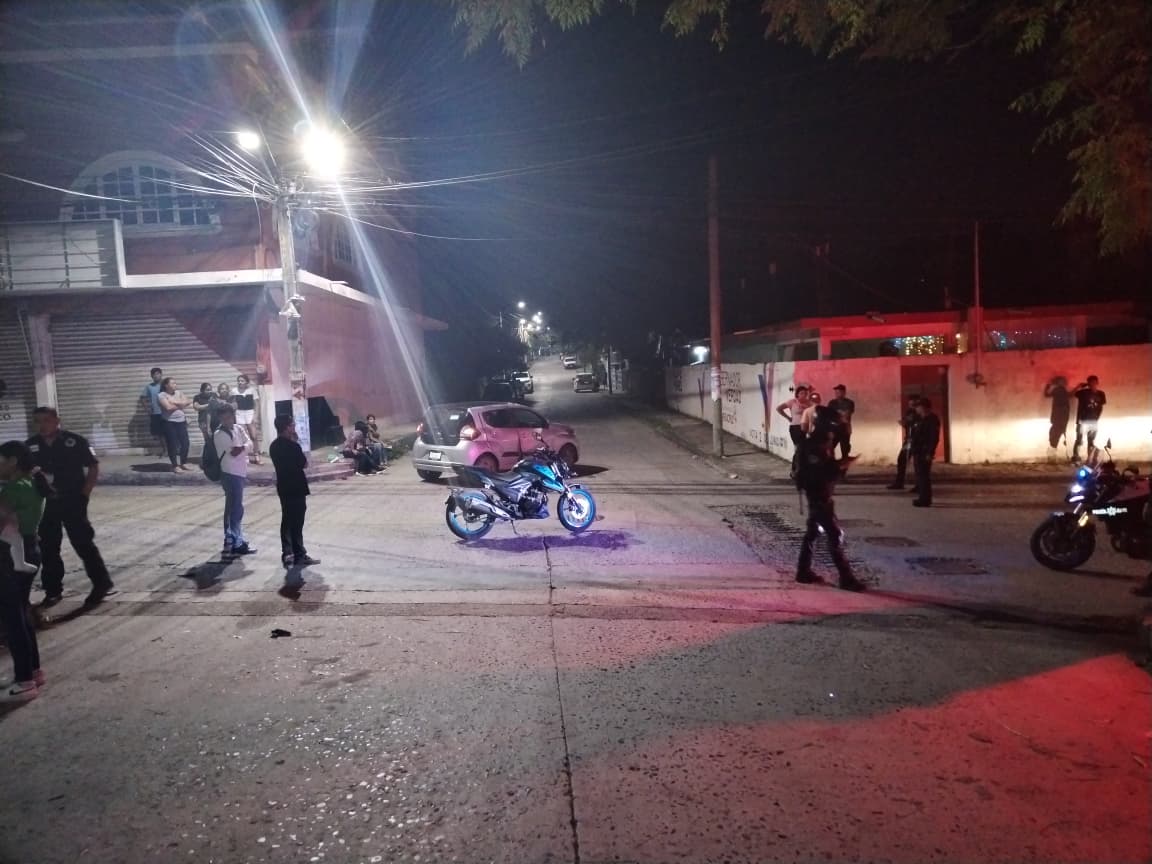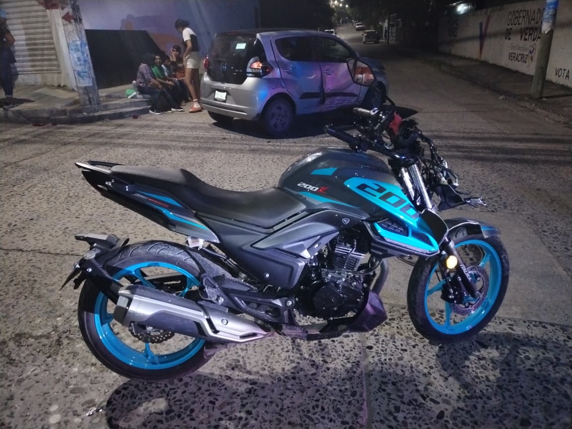 Un aparatoso accidente se registró alrededor de las 21:00 horas sobre la calle Cuitláhuac esquina con Hernández y Hernández, en la colonia Centro, dejando como saldo tres personas lesionadas, entre ellas un joven motociclista y una menor de edad.