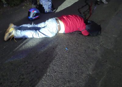 Los hechos ocurrieron alrededor de las 06:30 horas, a la altura del kilómetro dieciséis, en la comunidad de Lindero, donde una motocicleta y una bicicleta colisionaron violentamente, dejando a ambos conductores con lesiones de gravedad.