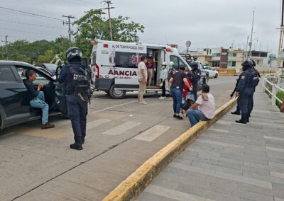 Oficiales de Tránsito y Vialidad Municipal efectuaron el peritaje correspondiente y aseguraron al conductor para el deslinde de responsabilidades. La unidad implicada, una Mazda CX-3 color negro, con placas del estado de Veracruz, fue enviada al corralón municipal.