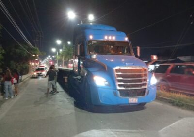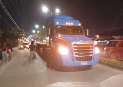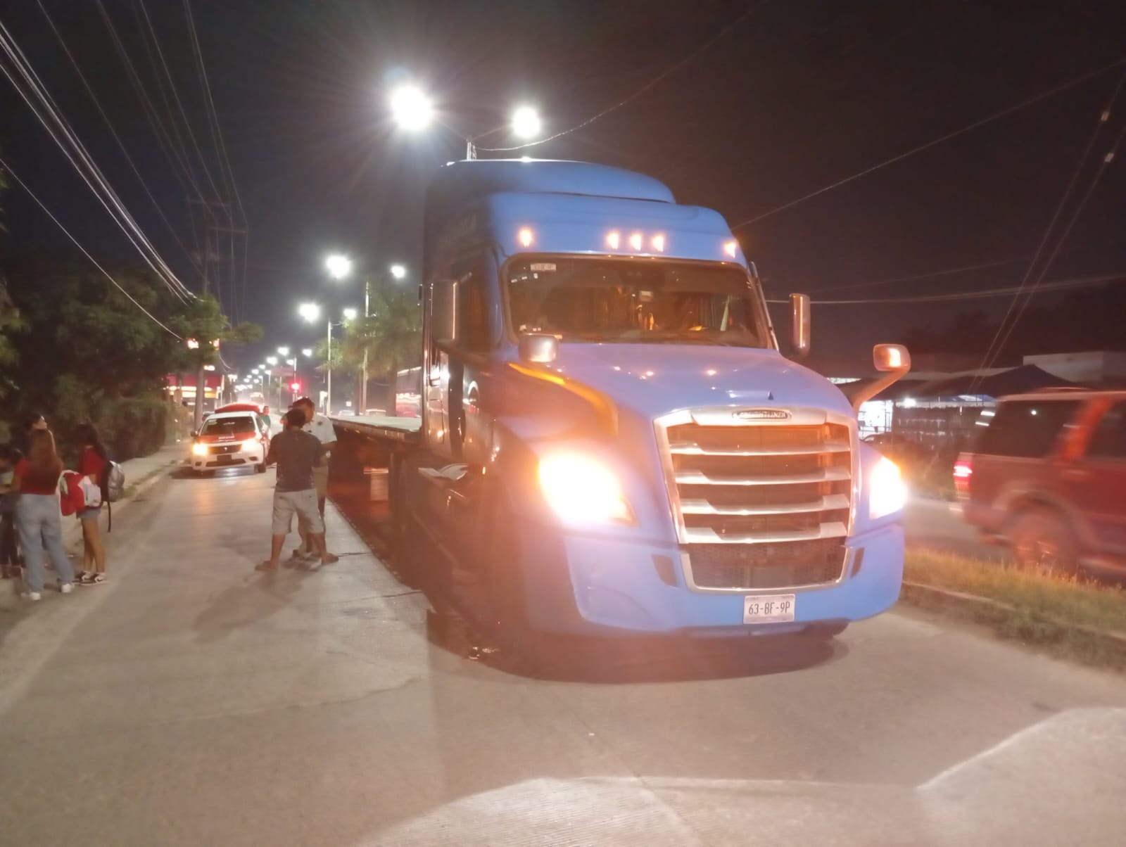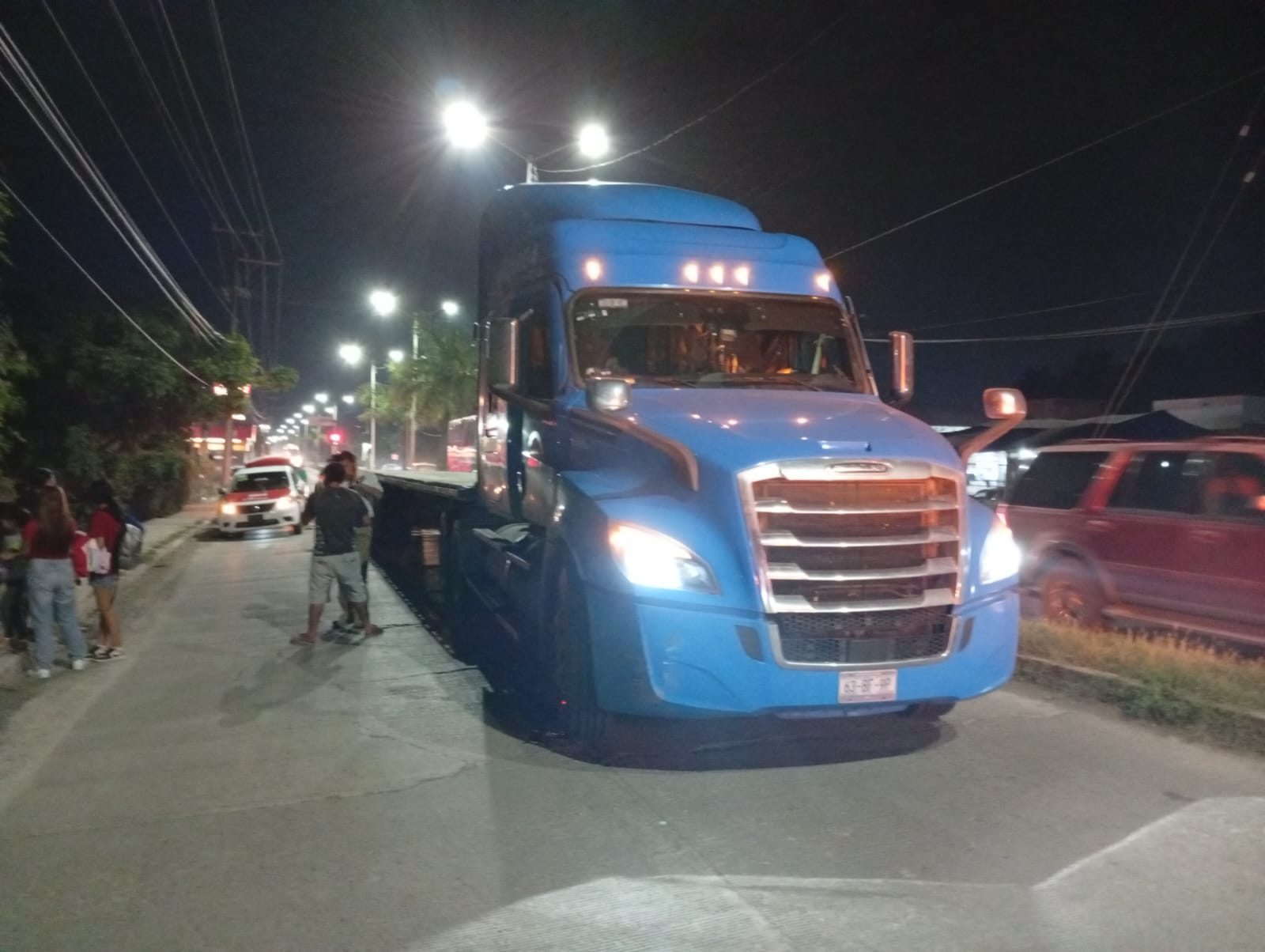 El incidente se originó cuando el conductor del tráiler marca Freightliner, tractor color azul y placas del Servicio Público Federal, identificado como Javier N., de 25 años y residente de la colonia 6 de Enero, efectuaba una maniobra de cambio de carril.