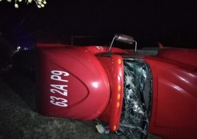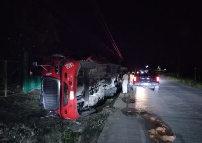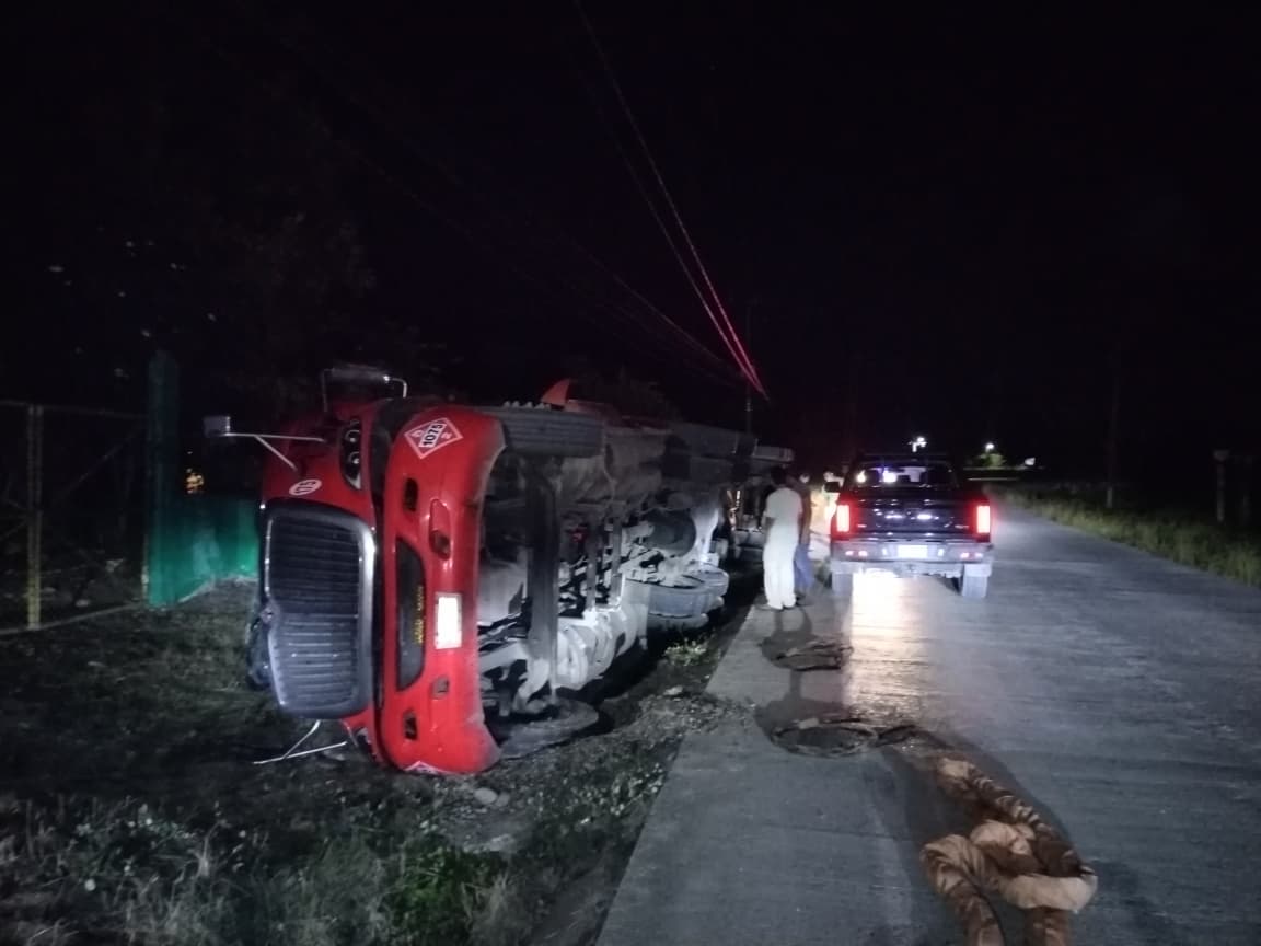 De acuerdo con el parte preliminar, la pesada unidad circulaba por la carretera Tuxpan–Cazones cuando el operador perdió el control, salió de la carpeta de rodamiento y cayó en una cuneta, quedando volcada sobre su costado derecho.