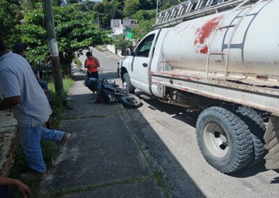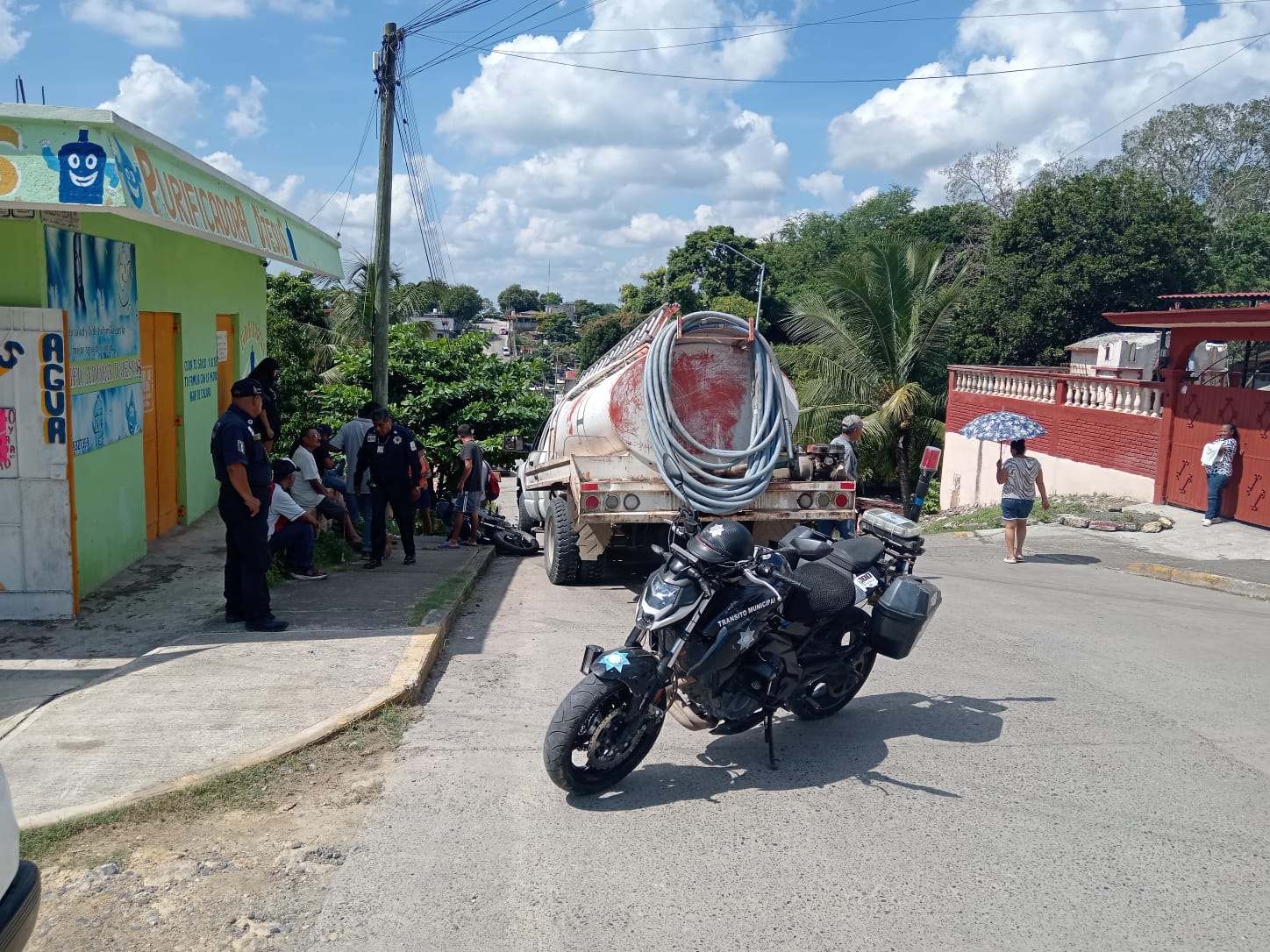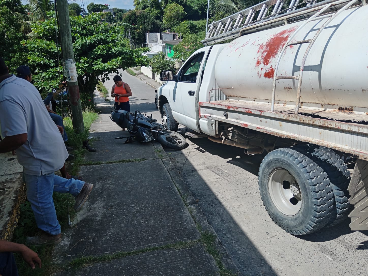 Pipa invade carril y embiste a motociclista en la colonia El Esfuerzo