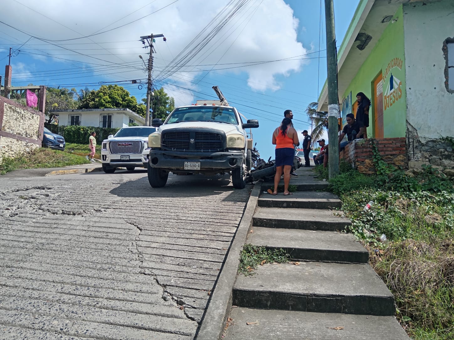 Al circular sobre la calle Adalberto Tejeda esquina con Cándido Aguilar, el conductor de la unidad pesada invadió el carril contrario, provocando que chocara contra una motocicleta Pulsar color negro, modelo 2021, con placas 4J6SA de la Ciudad de México, manejada por Moisés L, de 44 años, vecino de esa misma colonia.