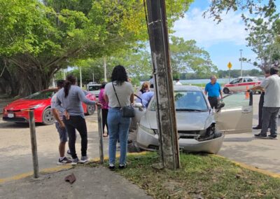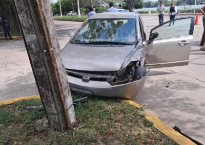 De acuerdo con el reporte de Tránsito Municipal, los hechos se registraron alrededor de las 13:00 horas, en la colonia Adolfo Ruiz Cortines, cuando Efraín M, de 60 años, vecino de la misma colonia, conducía un Honda Civic, color arena, modelo 2006, con placas 905-UAY de la Ciudad de México. Al intentar girar a su extrema izquierda sin respetar la línea de circulación, fue impactado con fuerza por una Ford Escape, color negro, modelo 2012, conducida por Raúl Felipe G, de 28 años, residente de la colonia La Calzada.