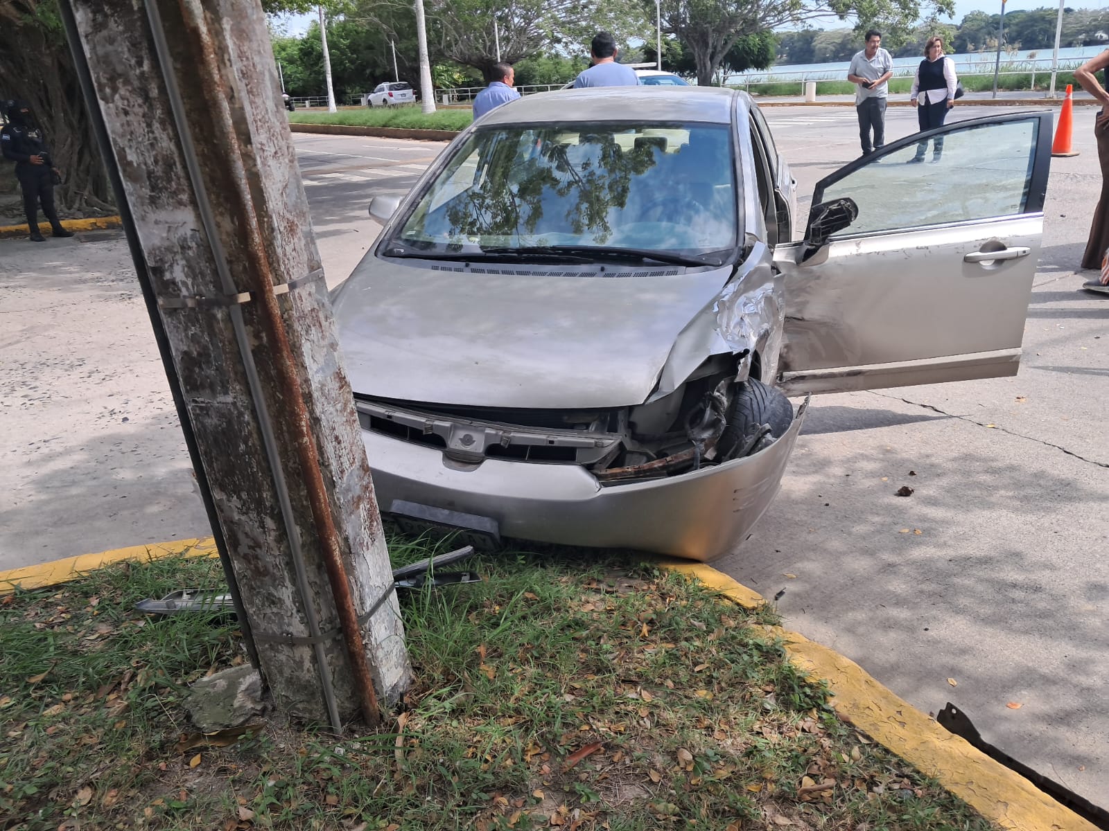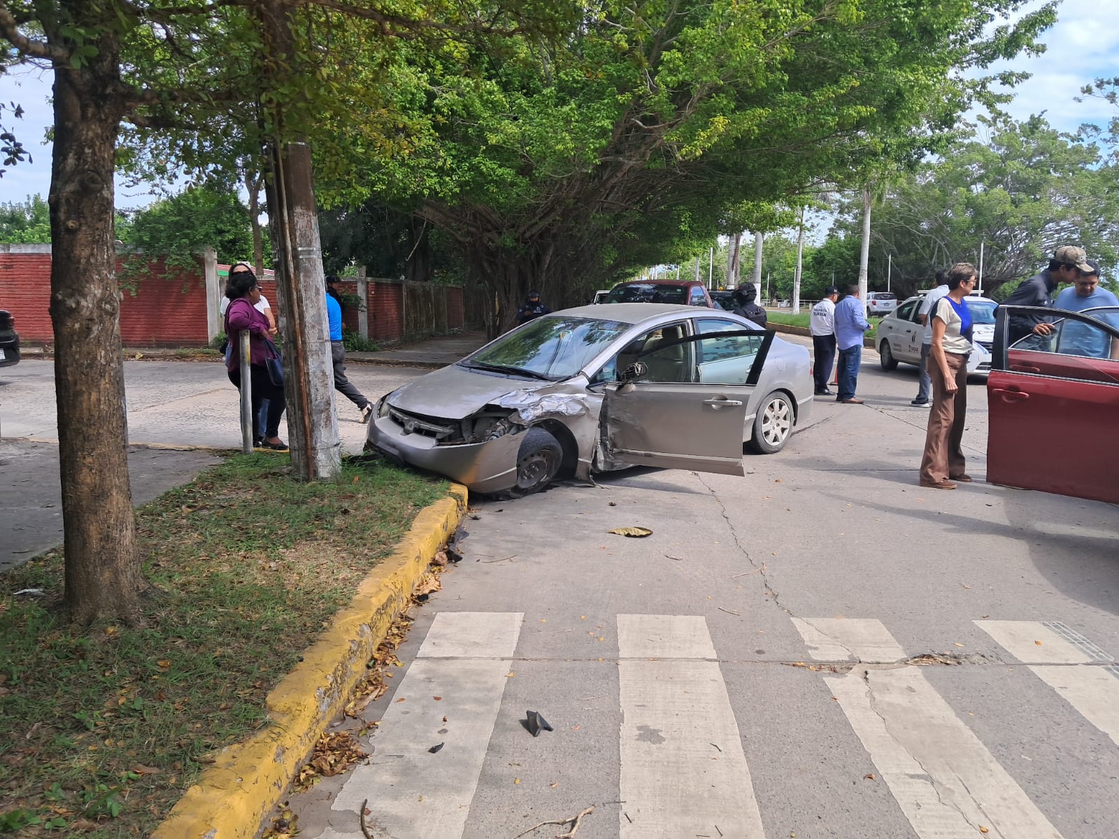 Por girar sin precaución y correr de más, termina en fuerte choque en el bulevar Maples Arce