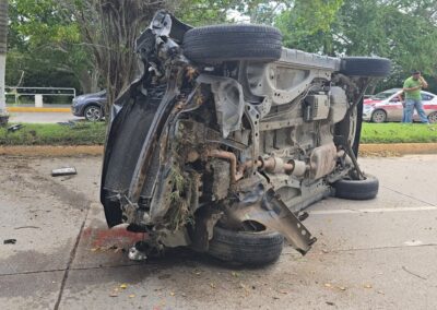 Un violento accidente vial ocurrido la tarde de este lunes en el bulevar Manuel Maples Arce, a la altura de la calle Azueta, dejó como saldo personas lesionadas y cuantiosos daños materiales, luego de que uno de los conductores circulaba a exceso de velocidad y otro realizó una maniobra indebida para incorporarse a su carril.