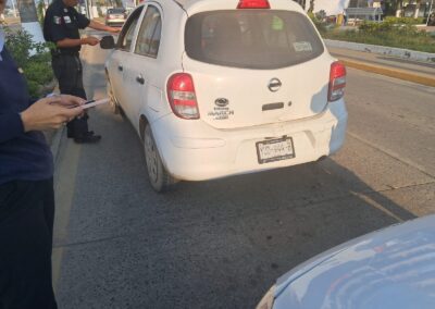 El percance ocurrió alrededor de las 7:50 de la mañana sobre el bulevar Independencia, a la altura de la calle José Garizurieta, en la colonia Centro. En ese momento, la ciudadana Carla Delfina S, de 33 años, con domicilio en la colonia Arboleda, conducía un Kia Forte 2024 blanco, con placas YUD-787-B del estado de Veracruz.