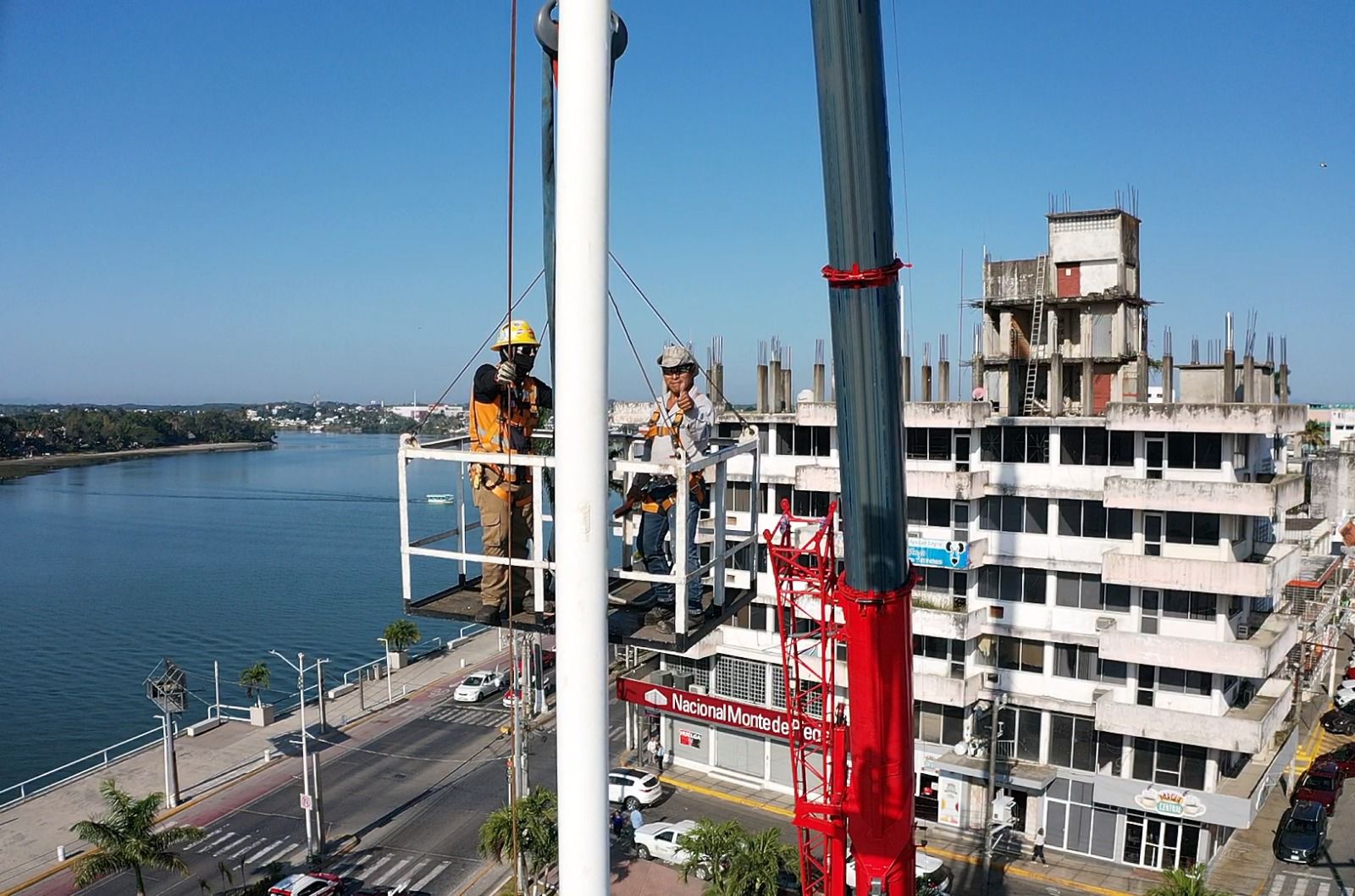 Realizan mantenimiento al asta bandera en la Plaza Cívica Municipal de Tuxpan