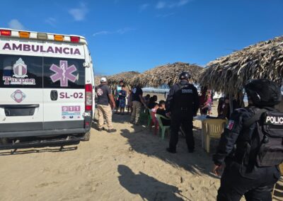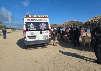 La ambulancia de Protección Civil de Tuxpan trasladó a Magali “N”, de aproximadamente treinta años, y a Armando “N”, de unos cincuenta y cinco años, hacia el hospital IMSS Bienestar “Emilio Alcázar”, donde fueron valorados por síntomas de asfixia acuática, contusiones y lesiones por impacto con estructuras de protección costera.