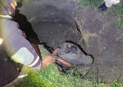 De acuerdo con la información oficial, el bovino llevaba aproximadamente dos días atrapado en el pozo.