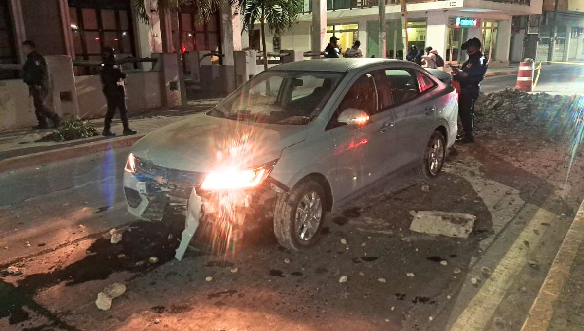 El conductor manejaba un vehículo marca Chevrolet, tipo Aveo, modelo dos mil veintiséis, color azul, con placas YEW-930-C del estado. Al no percatarse de que en la vía se encontraba un abanderamiento con cinta reflejante, colocado como medida de protección por trabajos de reparación de concreto, terminó colisionando con escombro que se encontraba en el lugar.