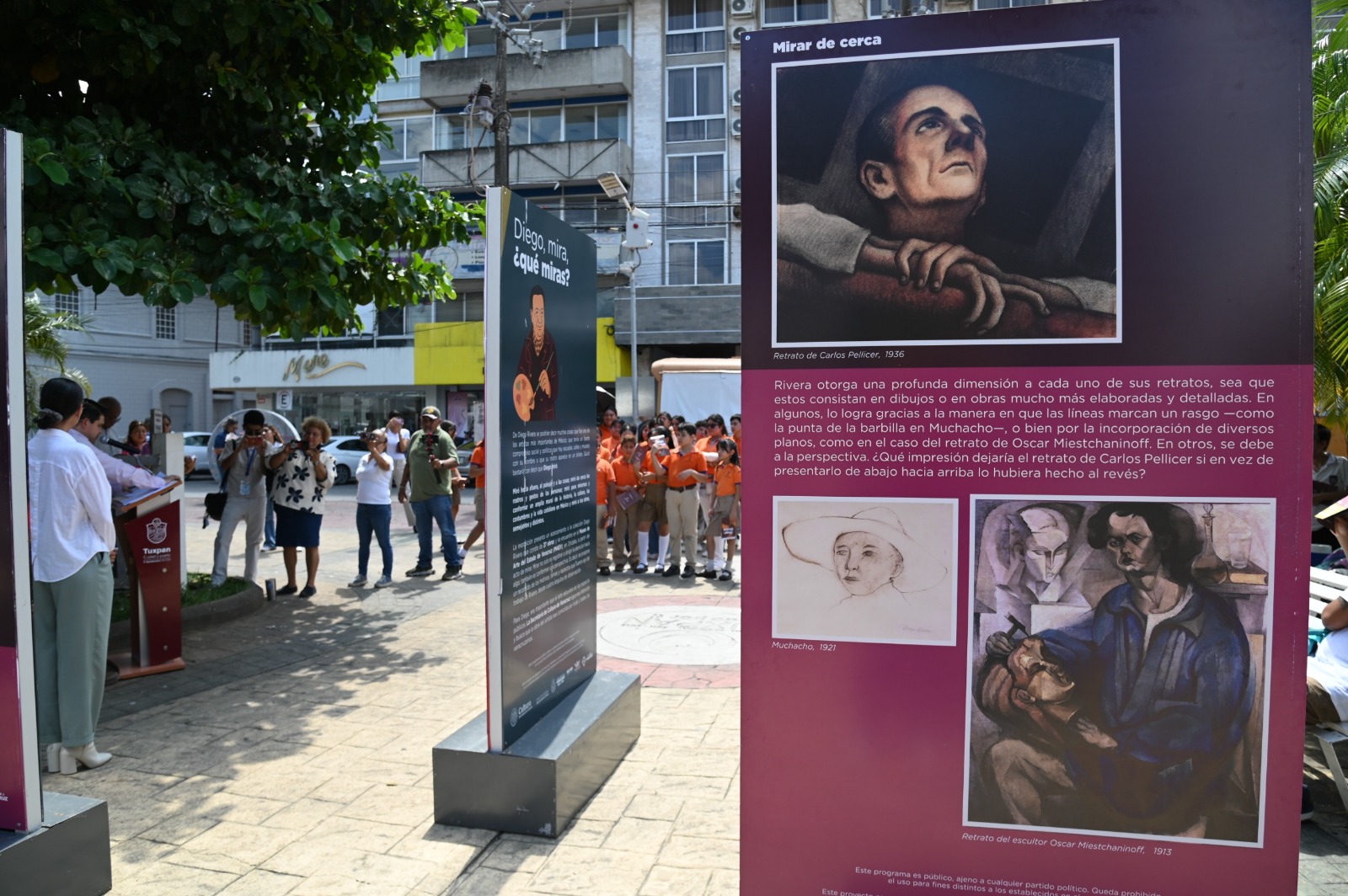 “Estamos muy contentos de estar en Tuxpan, esto es para todos, para que niñas, niños, jóvenes, adultos y adultos mayores conozcan las obras de este extraordinario artista que fue Diego Rivera”.