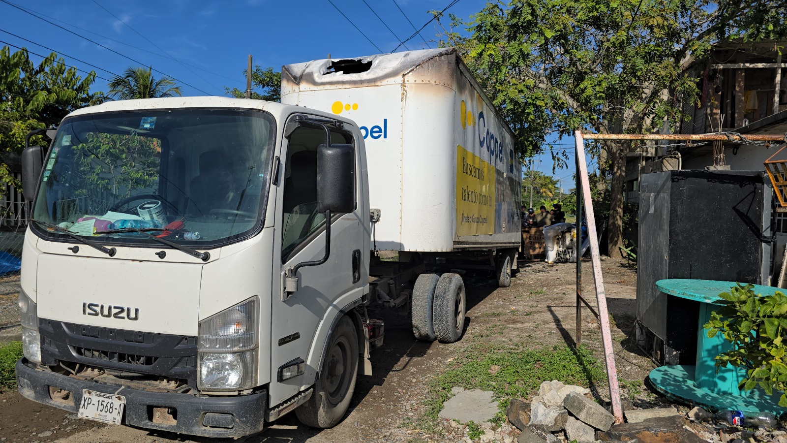 Se incendia camión de Coppel en La Mata de Tampamachoco por cables de media tensión bajos