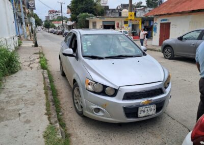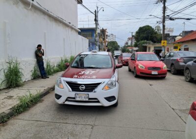 La otra unidad involucrada es un Nissan Versa con colores oficiales blanco y rojo, modelo dos mil diecinueve, placas A-470-XGN, Taxi #347 conducido por Ernesto Jesús «El Doble A», de cincuenta y cuatro años, residente de la colonia Jesús Reyes Heroles.