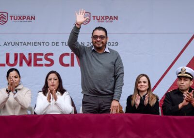 Comunicado de prensa del Ayuntamiento Tuxpan, Ver.– Este lunes se llevó a cabo el primer Lunes Cívico con honores a la bandera nacional del Gobierno Municipal de Tuxpan, correspondiente al periodo 2026–2029, como parte de las acciones encaminadas a fortalecer la identidad nacional y los valores cívicos entre la ciudadanía.