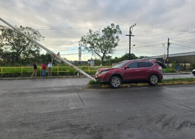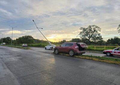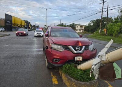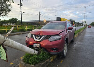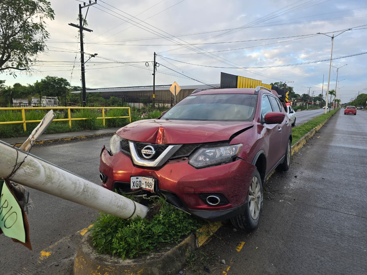 El hecho se presentó a la altura de la colonia Villa Rosita, donde una camioneta Nissan Rogue, color rojo, con placas del estado de Tamaulipas, se vio involucrada en un choque por alcance con otra unidad. Tras el impacto inicial, la Nissan subió al camellón central y colisionó contra un poste de alumbrado público, provocando su caída.